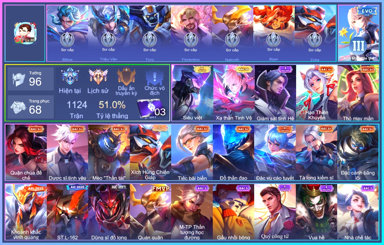MỤC: ACC LIÊN QUÂN TỪ 200K ĐẾN 500K GIÁ RẺ
