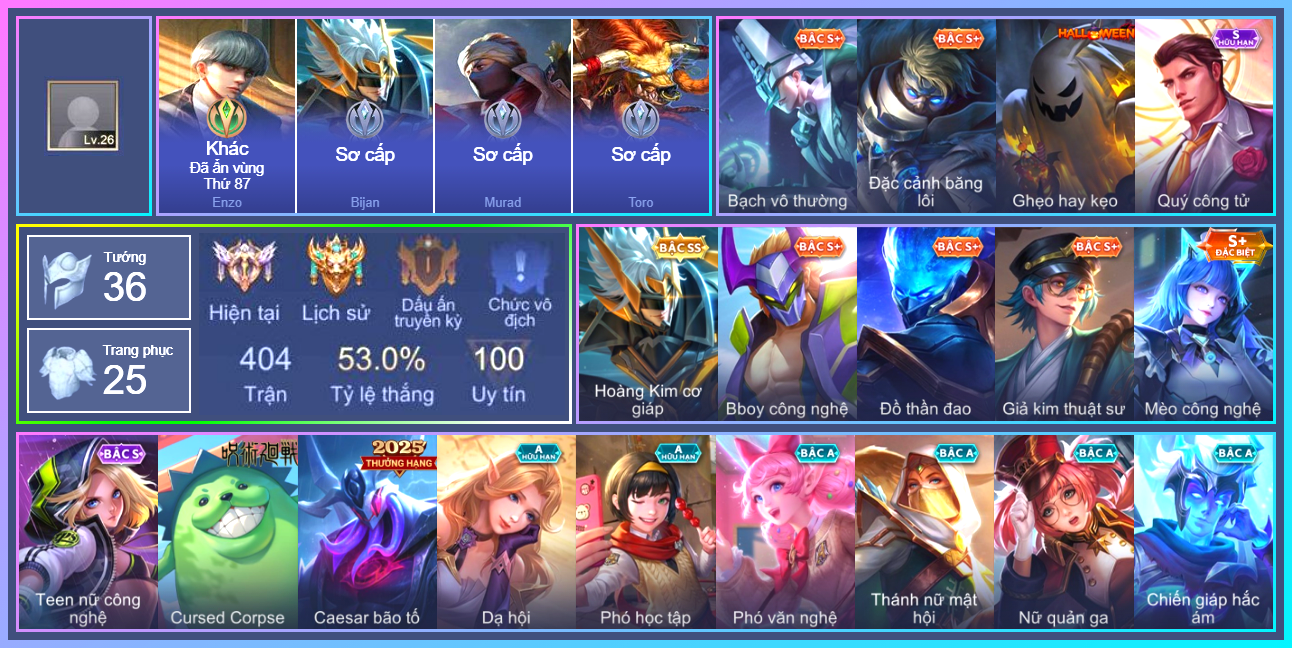 MỤC: ACC LIÊN QUÂN TỪ 200K ĐẾN 500K GIÁ RẺ