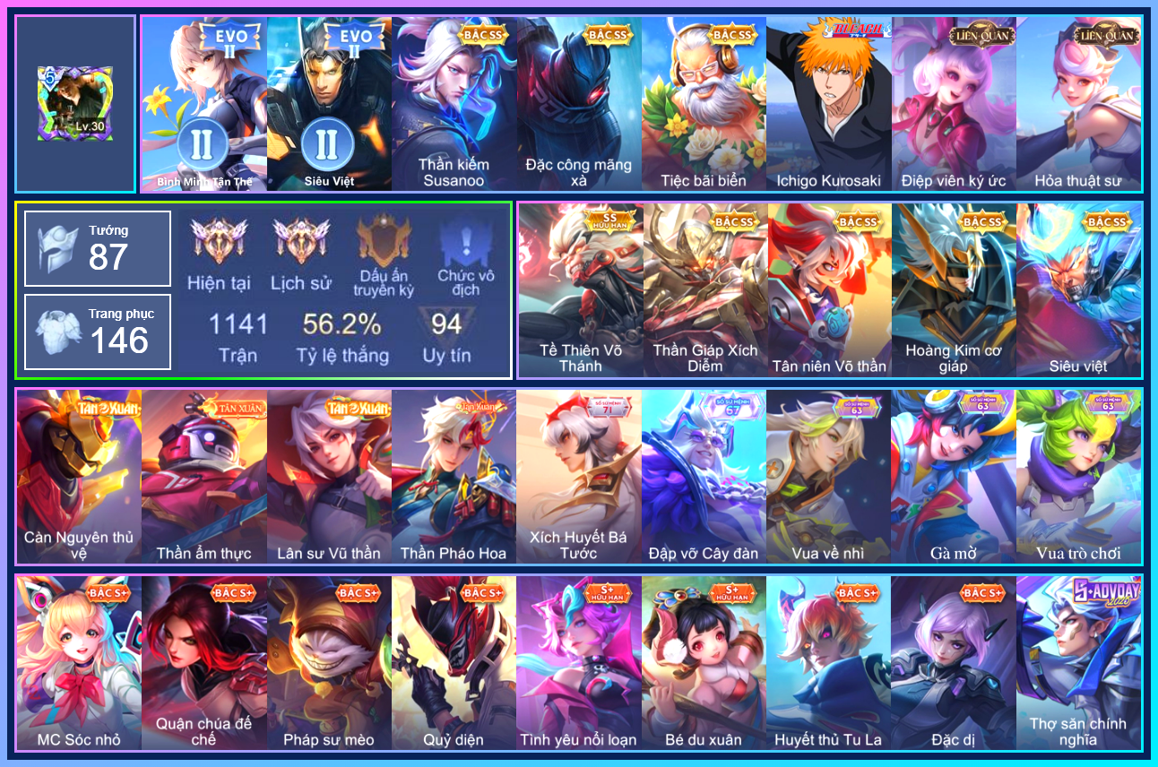 MỤC: MUA ACC LIÊN QUÂN GIÁ RẺ, NHIỀU SKIN S+, SS, SSHH TỪ 500K ĐẾN 1TR