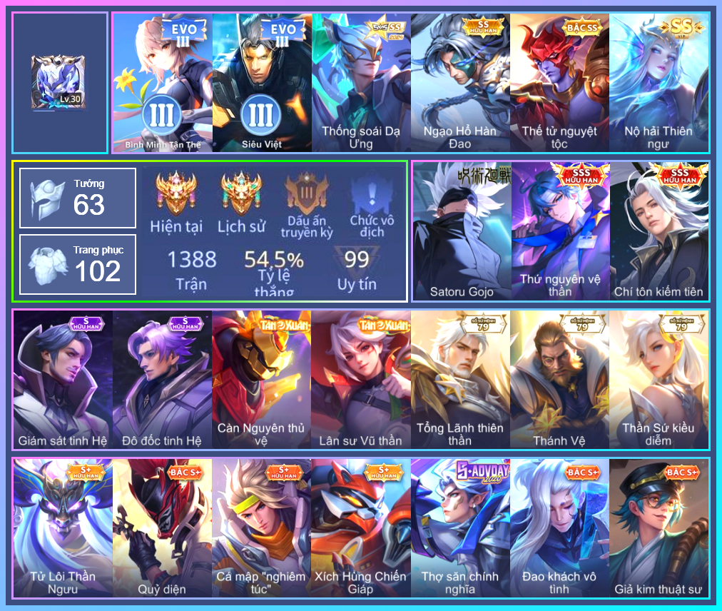 MỤC: MUA ACC LIÊN QUÂN VIP: SKIN SSS, ANIME, CỤC VÀNG, MÁC THÁCH ĐẤU TỪ 1TR ĐẾN 3TR GIÁ RẺ