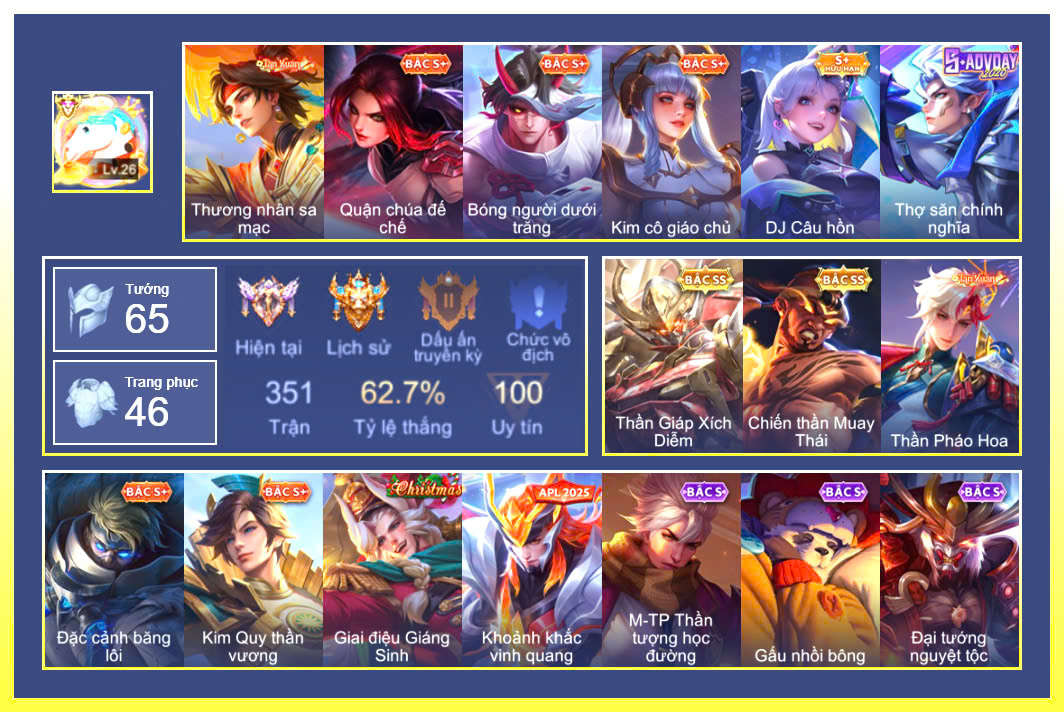 MỤC: MUA ACC LIÊN QUÂN GIÁ RẺ, NHIỀU SKIN S+, SS, SSHH TỪ 500K ĐẾN 1TR