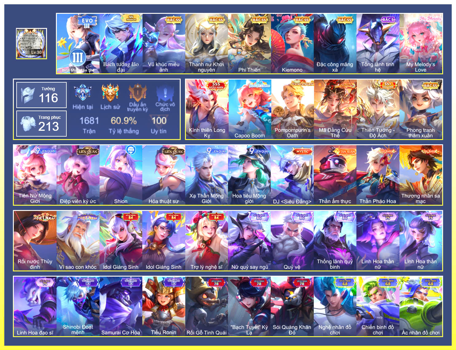 MỤC: MUA ACC LIÊN QUÂN VIP: SKIN SSS, ANIME, CỤC VÀNG, MÁC THÁCH ĐẤU TỪ 1TR ĐẾN 2TR5 GIÁ RẺ