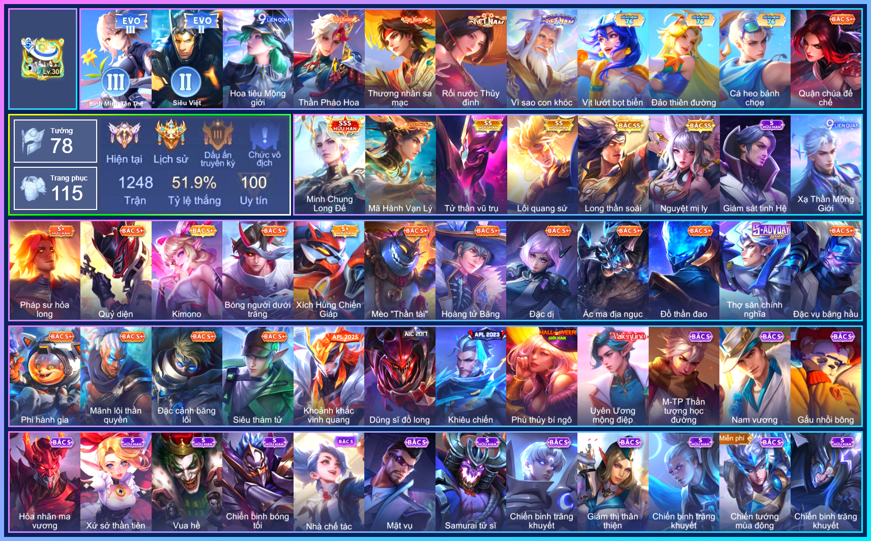 MỤC: MUA ACC LIÊN QUÂN VIP: SKIN SSS, ANIME, CỤC VÀNG, MÁC THÁCH ĐẤU TỪ 1TR ĐẾN 2TR5 GIÁ RẺ