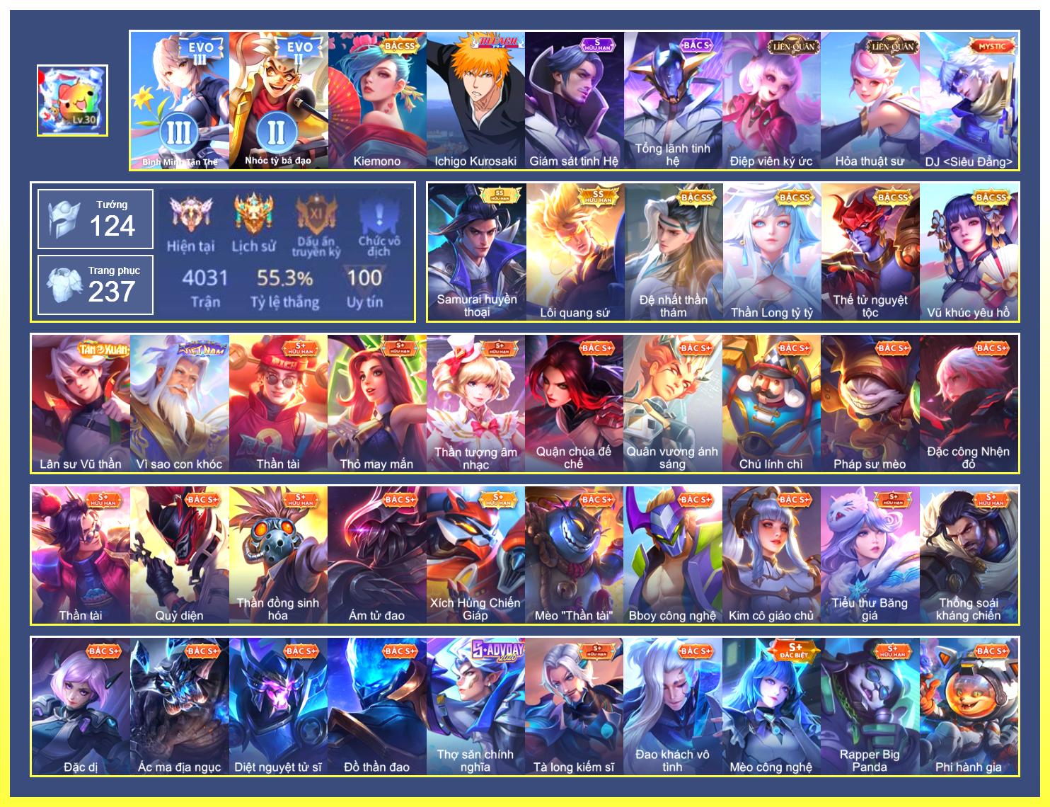 MỤC: MUA ACC LIÊN QUÂN GIÁ RẺ, NHIỀU SKIN S+, SS, SSHH TỪ 500K ĐẾN 1TR