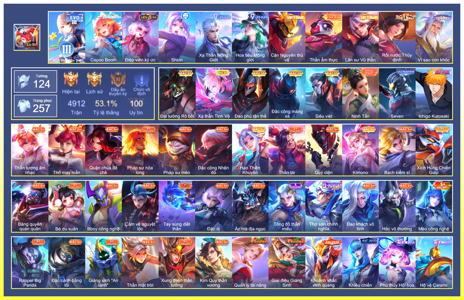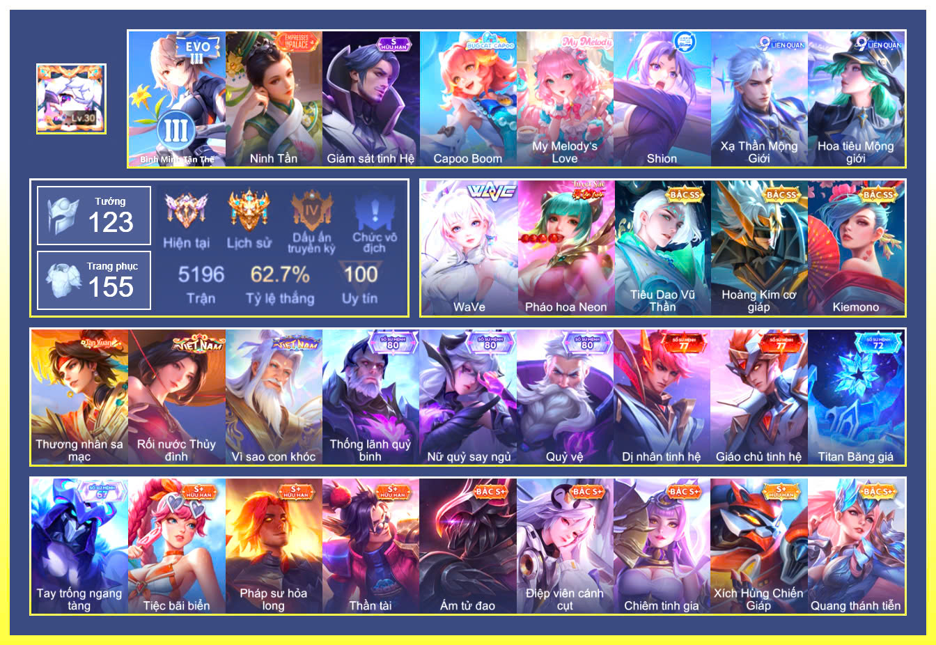 MỤC: MUA ACC LIÊN QUÂN GIÁ RẺ, NHIỀU SKIN S+, SS, SSHH TỪ 500K ĐẾN 1TR